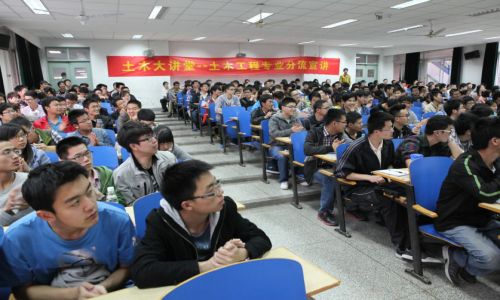 为了帮助同学们在土木工程专业分流时做出最佳选择,2013年4月25日18时30分,土木大讲堂之土木工程专业分流宣讲在致用101室举行。土木与交通学院沈扬副院长、本科生教学秘书、辅导员、土木工程各系所的专家教授出席宣讲会,11级土木工程专业全体同学参加了宣讲会。