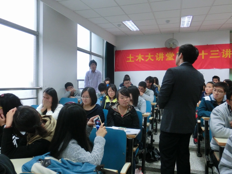 2014年11月8日下午,土木大讲堂第二十三讲在河海大学江宁校区致用楼418教室举办。本次讲座,特别邀请了东南大学交通学院院长助理兼交通系主任陈峻教授为我院2013级和2014级交通专业的本科生做报告,陈教授报告主题为《拥堵问题—交通工程的专业思考》。