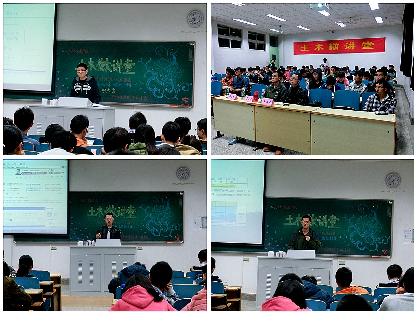 2014年11月4日星期二晚,“土木微讲堂”第五讲之“英语竞赛及四六级经验谈”在致用楼121举行。本次微讲堂邀请了土木与交通学院2011级和2012级参加过全国大学生英语能力竞赛并夺得优异成绩的三位同学马志东、于士彦和王益逊作为主讲人,为学院2013和2014级的同学们分享英语四、六级考试及英语类竞赛参赛经验。