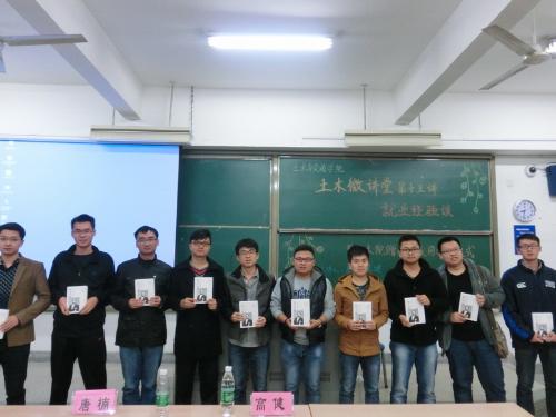 同时,正值土木与交通学院的学风建设月活动,在微讲堂上,进行了向2012级同学赠送专业书籍仪式。