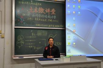 同时,在微讲堂上进行了向2013级同学赠送专业书籍仪式,本次学院赠送的书籍是单建教授著写的《趣味结构力学》。