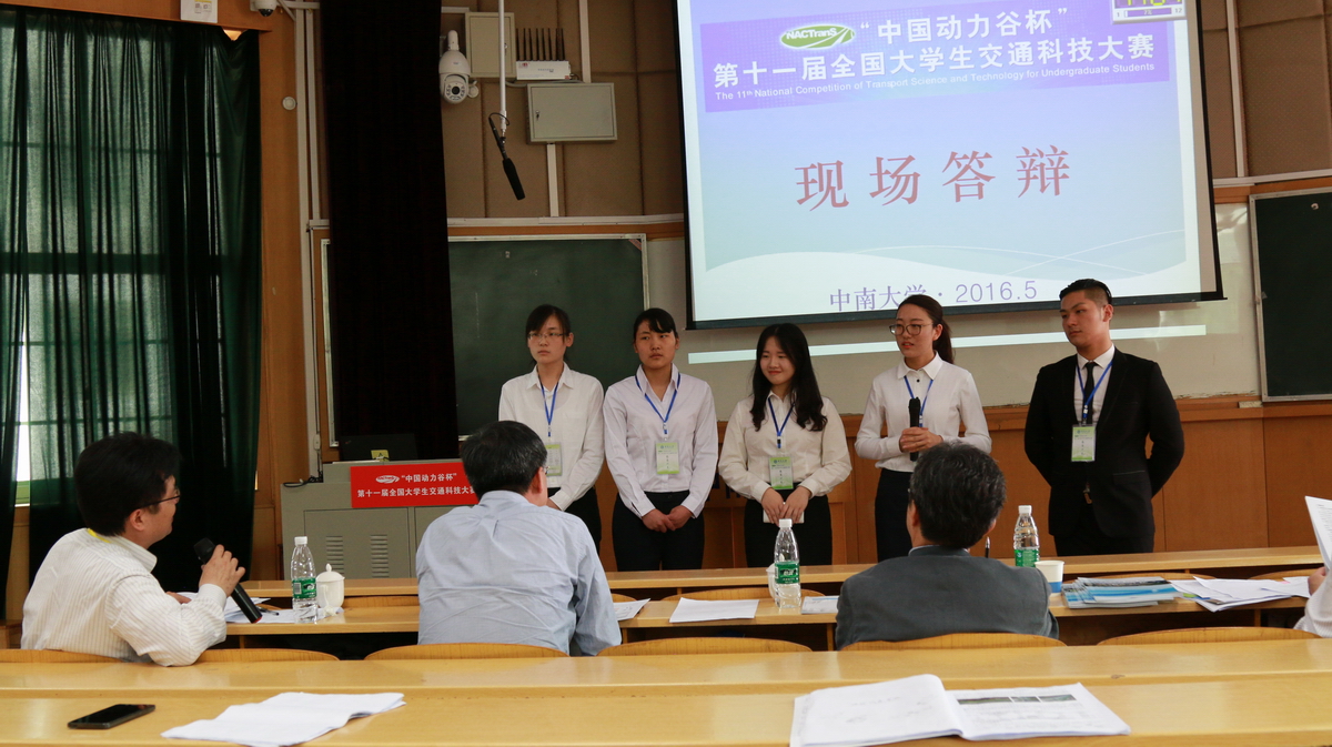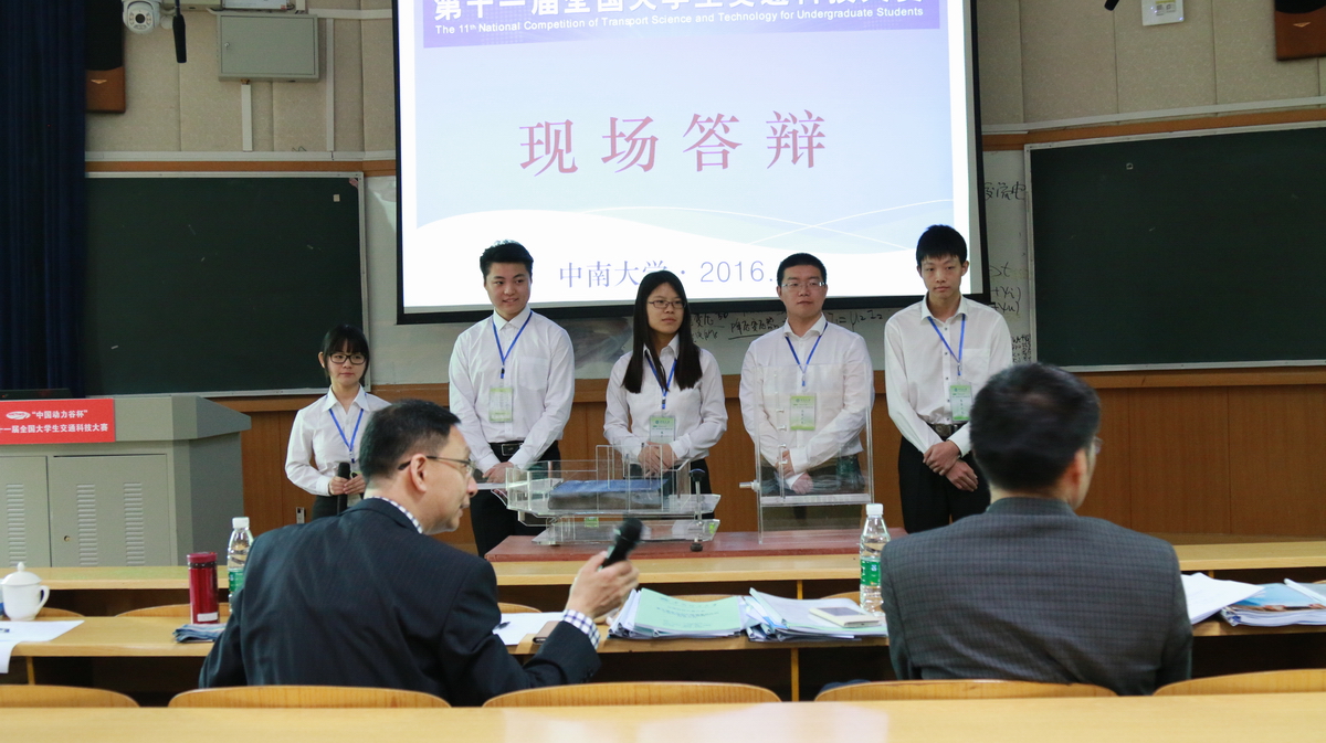 本届交通科技大赛有来自同济大学、东南大学、河海大学、西南交通大学、中南大学、长安大学、北京航空航天大学等104所高校选送的301件作品,分交通规划与管理,交通信息工程及控制,载运工具运用工程、道路与铁道工程及其他,轨道交通优化设计四个组别进行网评角逐,最终选出80件作品(每组20件)进行决赛答辩。而我院有两件作品晋级决赛,其中由徐艳、陶莎、胡超鹏、王晶、王朝完成的作品“考虑降雨强度与路面横坡的大空隙沥青混合料渗水性能测试装置的研制” (指导教师: 陈俊)获一等奖(每组仅2个一等奖),由周雨涵、颜少卿、崔冰彦、王文哲、陈子柏完成的作品“个性化定制公交的系统设计和算法” (指导教师: 张小丽、郑长江)获三等奖。