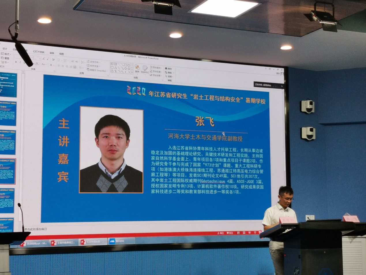 814日是2020年江苏省研究生“岩土工程与结构安全”暑期学校的第五天。今天的学术报告由太阳集团tyc151石修松教授主持。