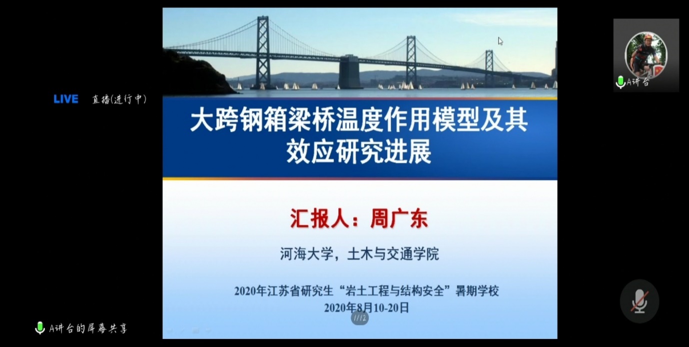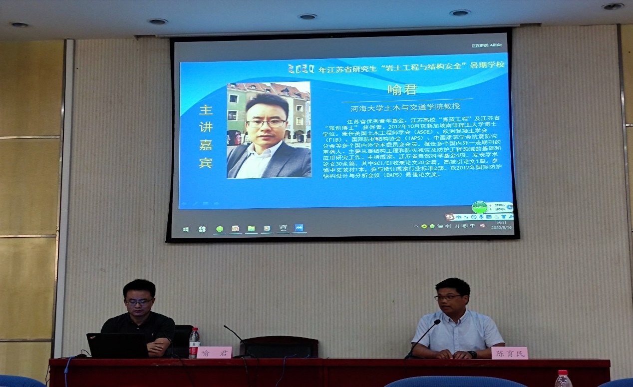 8月16日是2020年江苏省研究生“岩土工程与结构安全”暑期学校的第七天。今天的学术报告由太阳集团tyc151陈育民教授主持。