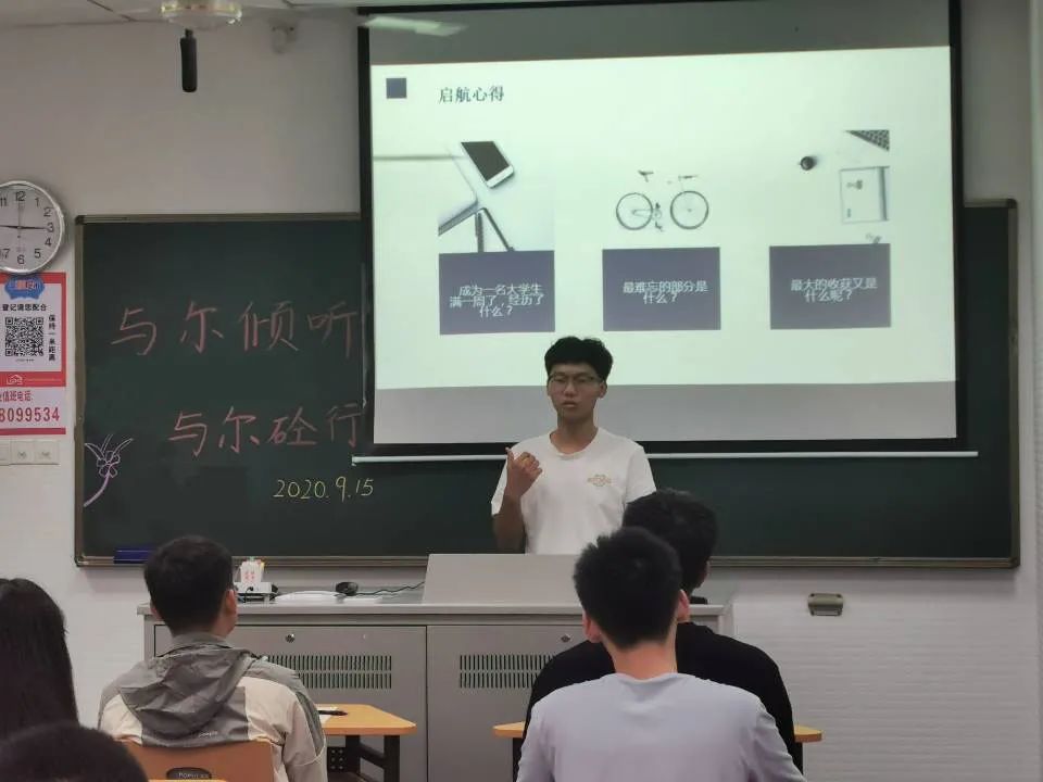 班会在导师的讲话中正式拉开帷幕。各班班导师用充满鼓励的语言向新生们表达了对他们的期望和祝福,希望他们能在接下来的大学生活中绽放属于自己的光彩,同时还分享了自己的教学经历,给新生们指导出一条条明路。而各位助学导师则是向新生们分享自己的学习经验,以自己的亲身经历和体会为新生们指引未来前进的方向。