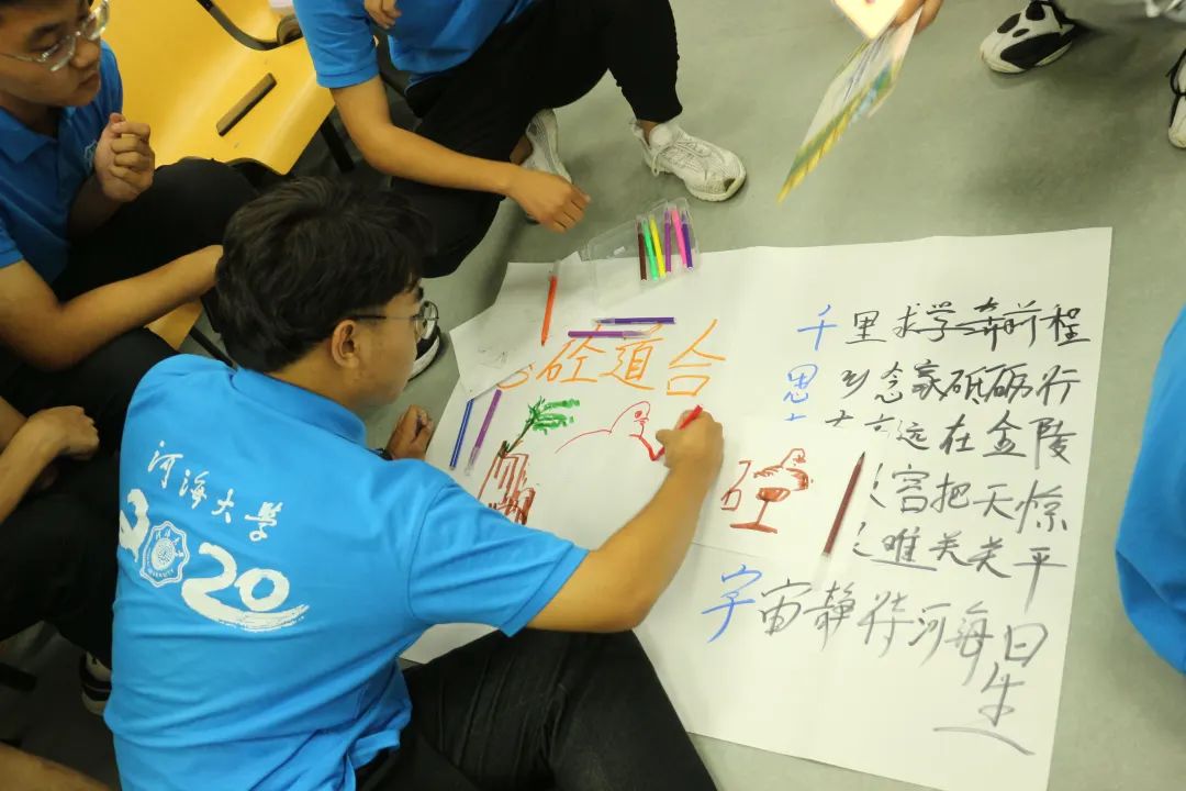 大会伊始,各班导师自我介绍并分享班会主题,分享自己开启大学生活的感受,同学们也积极加入其中发表与交流自己初入大学的感言与感受。接着,为了引导同学们思考用什么样的心态来面对大学生涯增添班级凝聚力,鼓舞同学们的积极心态,班导师开始让同学们讨论刚收到河海大学录取通知书的感受,并邀请几位的同学上台发表感言。为了启发同学们对大学生活的畅想,帮助同学们用平衡多元的视角安排大学生活,各班导师分组让同学们进入讨论,并让同学们每人绘制一张“大学生活花瓣图”,以此提炼大学生活的主题。绘制完成各组轮流上台讨论并分享本组成员期待的大学生活,班导师与同学们其乐融融,交流得热火朝天。