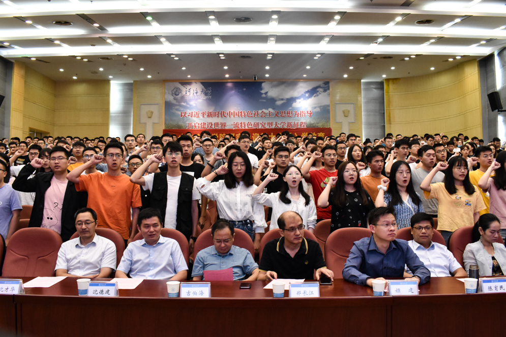 大会的第一项议程为迎新大会,院党委汪建新书记带领全体新生进行了恪守学术道德宣誓仪式。随后,院长高玉峰教授致辞并对学院做了详细介绍。接着,高院长从研究生与本科生的区别、毕业标准和研究生的目标三个方面介绍了研究生的定位与特点,并寄语全体新生以科研为主,兼顾学习、生活和健康,追求更高的学术理想。最后,高年级学生代表2017级桥梁工程专业博士研究生王秋东同学分享了学习生活经验与感悟,并向2020级新生表达了美好祝愿。新生代表2020级结构工程专业博士研究生问储园同学提议新生应该有迎难而上、善始善终的态度,要珍惜时间,不负韶华。