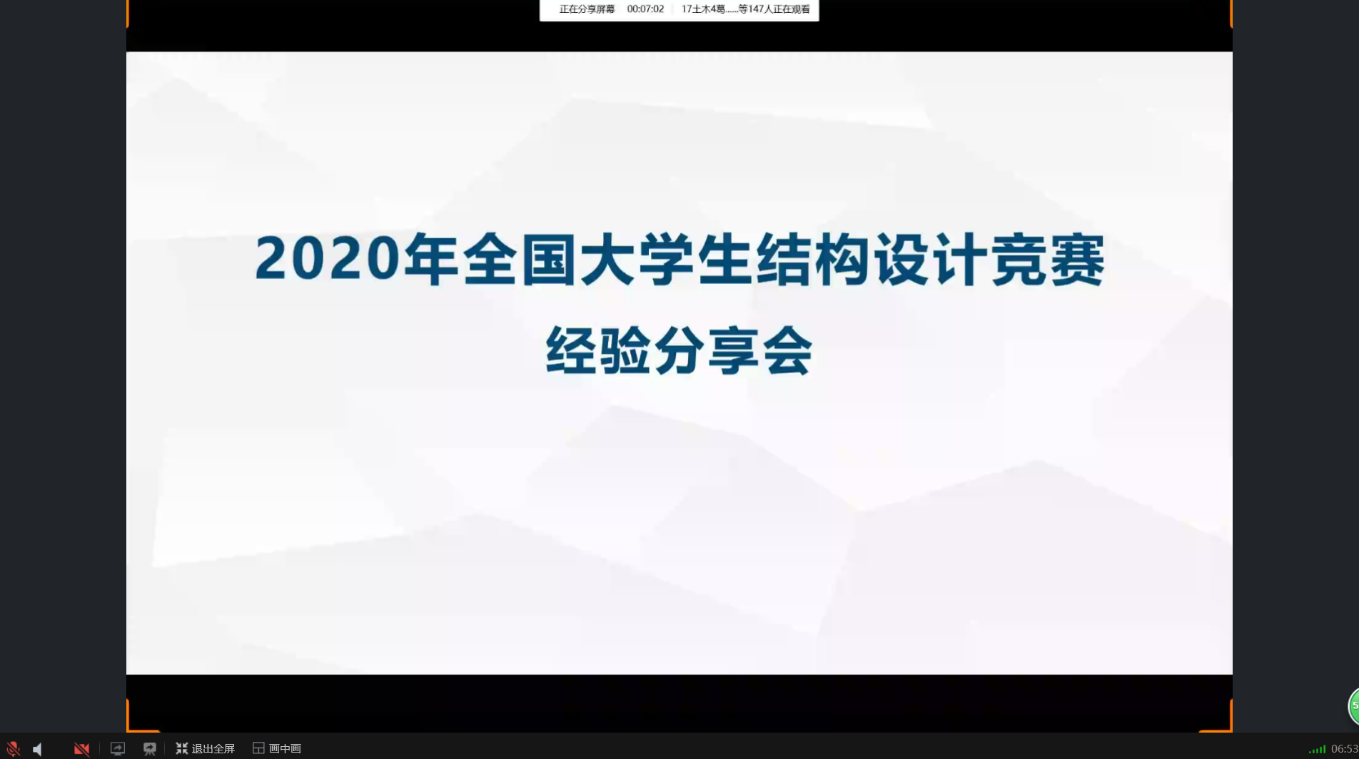 2020年5月5日18:30,由土木与交通学院主办,学院本科生科协承办的土木与交通微讲堂第七十七讲之“全国大学生结构设计竞赛经验分享会”以线上直播的方式成功举办。本次微讲堂邀请到了2017级土木工程结构方向本科生郭方舟和王昊康同学为大家带来经验分享。土木与交通学院17、18和19级部分学生聆听了本次讲座。