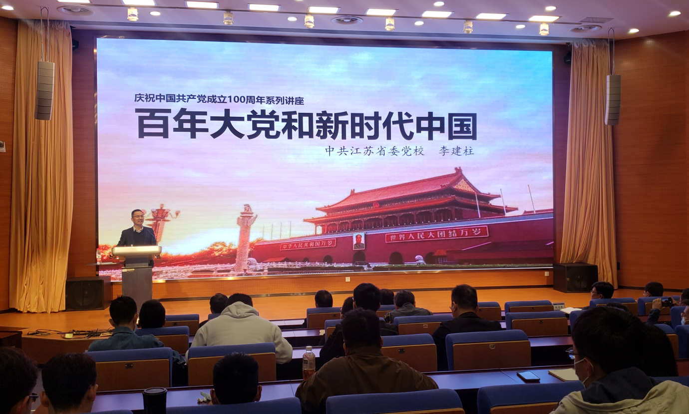 329日下午,土木与交通学院党委邀请中共江苏省委党校哲学教研部李建柱教授作党史学习教育专题报告。学院党委委员、教师党员和学生党员代表130多人聆听了报告。院党委书记汪建新主持报告会。