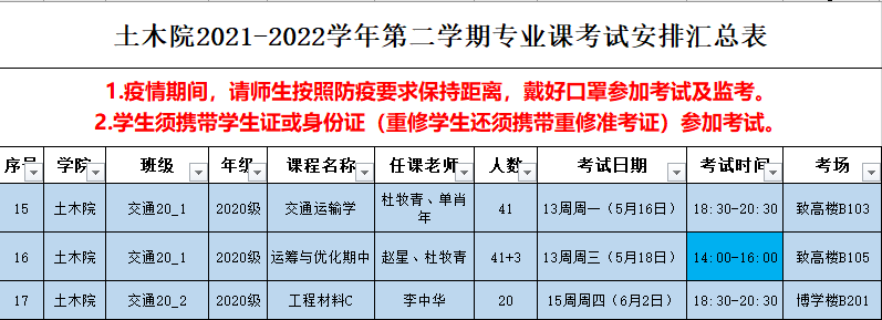 土木院2021-2022-2学期专业课考试安排(第三批)