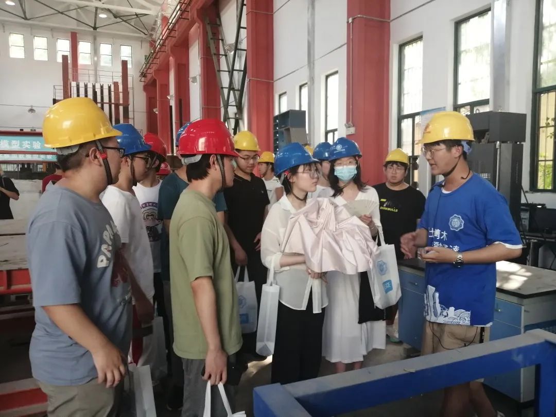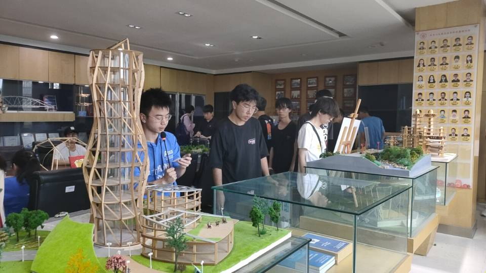 随后,在志愿者们的带领下,同学们分批前往学院结构工程实验室、创新实践成果模型展览室参观学习。在结构工程实验室,志愿者向同学们介绍了建筑的结构体系和常见的结构类型以及一些大型实验器械,让大家对专业类实验的方法和所用设备有了更进一步的了解;在创新实践成果模型展览室,同学们欣赏了各种形式各异、制作精美的模型,也了解到了学院的卓越成果和传承精神,进一步加深了同学们对土木、交通工程专业的理解。