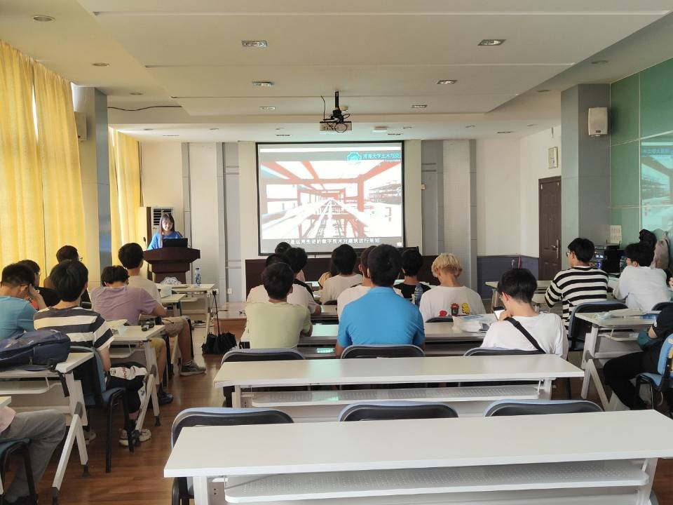 最后,同学们在科学馆516一起观看了BIM技术视频,现场志愿者根据视频里的具体内容进行同步讲解。视频内容主要包括土木交通行业BIM技术在装配式建筑中的应用,符合当前结构工程的发展方向,带领同学们领略了专业发展的前沿。