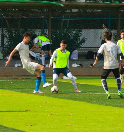 滴滴汗水,伴随着矫健的步伐,挥洒在绿茵场上。种种信念,凝集成坚定的目光,寄托于脚下的足球。严防死守,永不言弃,他们以飞扬灵动的身影诉说着这个秋天关于足球的故事。