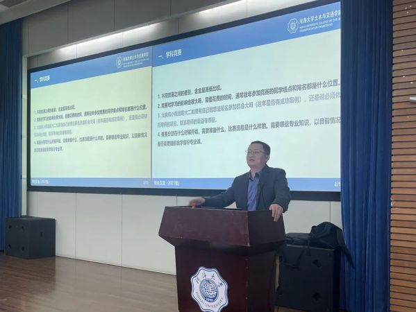 刘院长向同学们介绍了学院的学科竞赛体系,列举了可参与的竞赛并简单描述了竞赛流程。同时,刘院长鼓励大家积极参与学科竞赛,用比赛激励自己不断前进,在压力中提升自己的专业能力和综合素养。