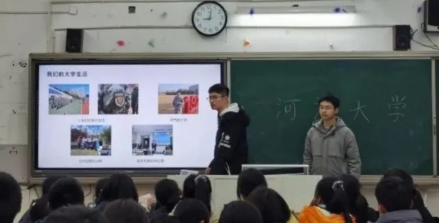 团队成员进行了简单的自我介绍,讲述了自己高中时的经历并分享了学习经验。随后,队长陈宇向高三学子们介绍了河海大学,从河海大学的历史谈到河海大学的未来,介绍了河海大学的强势专业——水利等相关专业,并向同学们分享了河海大学毕业生的就业率及就业去向。最后,团队成员各自介绍了所学专业,讲述了自己对本专业的理解,鼓励同学们积极报考河海大学。