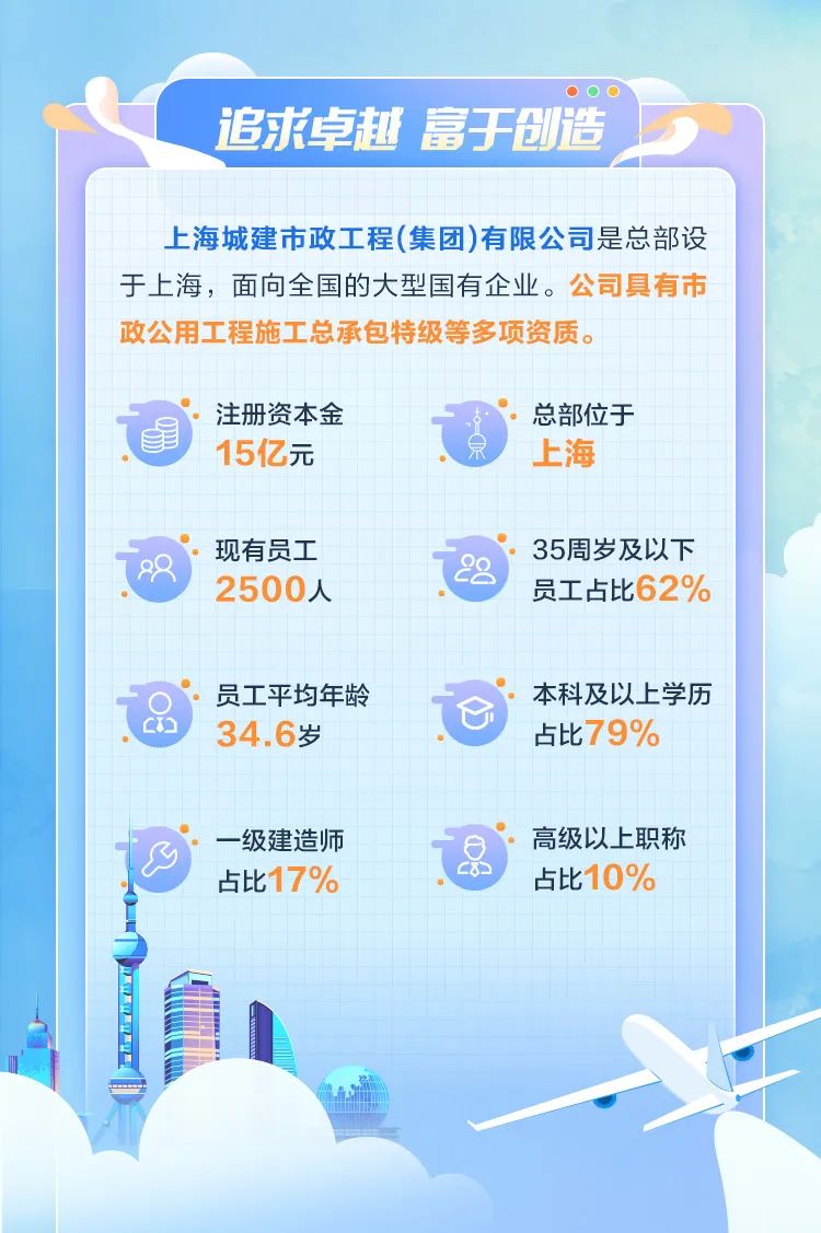招|追求卓越,富于创造!上海城建市政工程(集团)有限公司2023年校园招聘正式启动