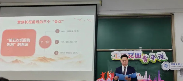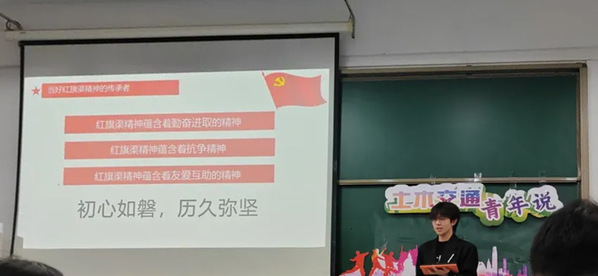 在本次土木交通青年说活动中,主讲人为同学们讲述了蕴含在红色精神背后的故事。希望同学们能领悟红色精神,在生活中践行红色精神,以自己的实际行动报效祖国。