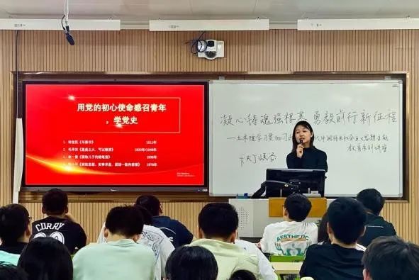 伟大新时代,青年当在知行合一中激发青春之力。张老师强调了青年工作的重要性,她指出大家是生逢其时的当代中国青年,始终是党和人民高度信任、寄予厚望的先锋力量,必将大有可为,也必将大有作为。对于青年,要知行合一,知党的科学理论,行青年与社会的良性互动。听党话,跟党走,共同奋进新征程。她鼓励同学们要积极参与各类理论学习和社会的实践活动,承担起新时代青年的责任与义务。
