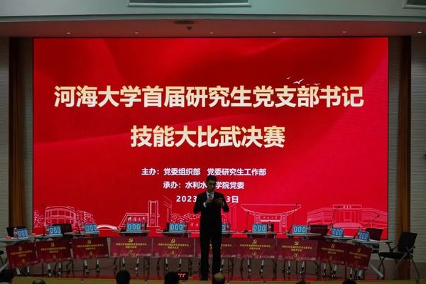 为高质量开展学习贯彻习近平新时代中国特色社会主义思想主题教育,全面学习贯彻党的二十大精神,积极落实全省党建工作示范高校创建工作安排,进一步提高研究生党支部书记业务水平和履职能力,促进研究生党支部建设提质增效,学校党委组织部、党委研究生工作部和水利水电学院党委联合开展了河海大学首届研究生党支部书记技能大比武。