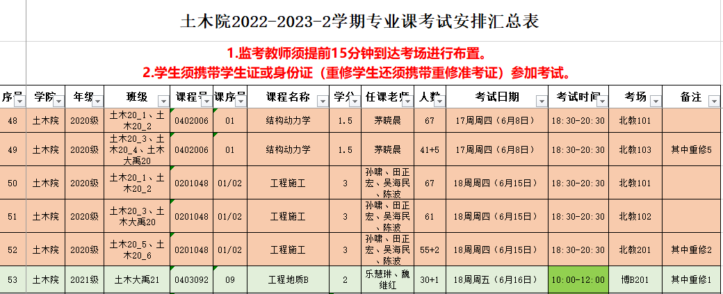 土木院2022-2023-2学期专业课考试安排(第六批)