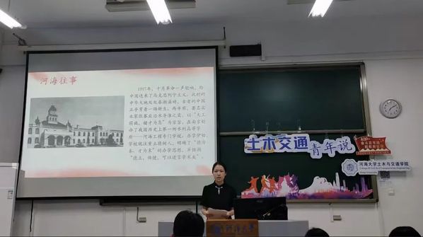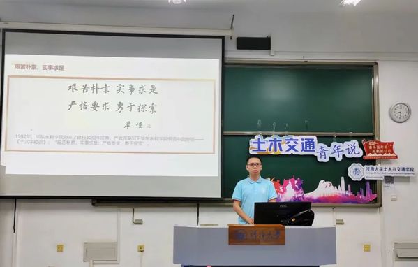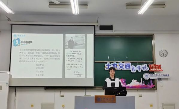 随后,主讲人张文强讲述了文伏波的的红色事迹。文伏波是我国工程院院士、著名的水利工程专家、河海大学杰出校友,一生参与了诸如丹江口水利工程、葛洲坝水利枢纽等多项重大水利工程的设计施工。文伏波院士攻坚克难、实事求是,为新中国的水利建设事业做出了杰出贡献。