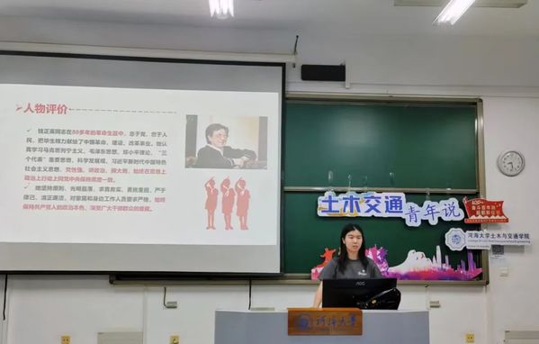 接着,主讲人姚梓芮讲述了钱正英的红色事迹。钱正英是我国工程院院士、水利水电专家,也是华东水利学院(今河海大学)首任校长。她曾主持研究、制定了一系列关于黄河、长江、淮河、海河等流域的治理和规划纲要,为大江大河的管理做出了杰出贡献。此外,钱正英还领导了三峡工程建设的可行性论证工作,并在密云水库、长江葛洲坝水利枢纽等工程建设中多次解决了重大技术难题。