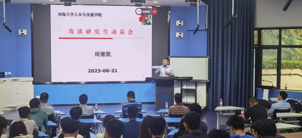 2023年6月21日8:30,土木与交通学院在河海大学西康路校区科学会堂102举行2024年研究生招生宣讲会。本次宣讲会有幸邀请到土木与交通学院岩土工程科学研究所吴跃东教授和吴勇信教授、结构工程研究所蒋勇老师、桥梁工程研究所谢发祥副教授、安全与防灾工程研究所张富有副教授、隧道与地下工程研究所冯迪副教授、交通运输工程研究所徐鹏副教授、道路与铁道研究所吴建涛副教授、路面工程研究所司晶晶副教授为同学们作各方向的介绍。出席本次会议的还有土木与交通学院副院长周继凯教授,本科生2020级部分同学聆听了本次讲座。