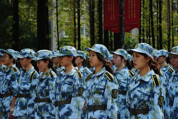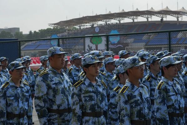 在烈日下站着挺拔军姿,在余晖中唱着铿锵军歌。这是我们新的校园生活中难以忘怀的场景。