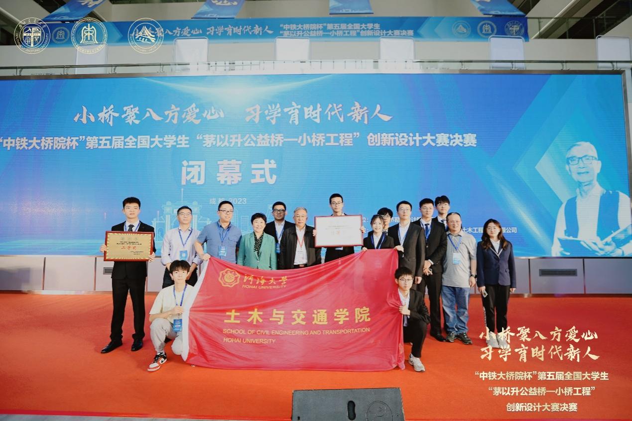 2023921日至23,由北京茅以升科技教育基金会、西南交通大学联合主办的第五届“茅以升公益桥-小桥工程”创新设计大赛决赛在成都举行。比赛以“小桥聚八方爱心,习学育时代新人”为主题,以公益性、科学性、先进性、实用性、经济性为理念,引导大学生走出校门、深入基层、结合专业特点,主动融入国家乡村振兴与美丽中国发展战略。来自清华大学、同济大学、浙江大学、哈尔滨工业大学、东南大学、湖南大学、河海大学、澳门大学、利兹大学等国内外40余所高校的73支队伍入围决赛。由我院本科生组成的河海大学代表队取得1项特等奖、1项二等奖的优异成绩,其中特等奖是我校参加该项赛事以来的最好成绩。