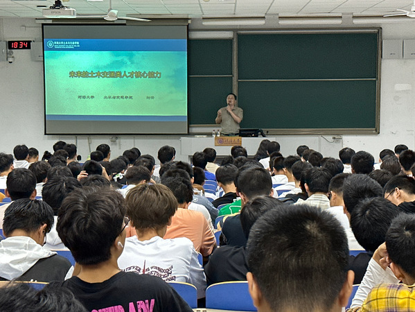 首先,刘云副院长指出大土木、大交通的概念,并简要介绍河海大学土木工程和交通工程专业在全国的地位;同时进一步说明土木工程和交通工程专业的定义,打破了同学们对土木与交通专业的刻板印象。