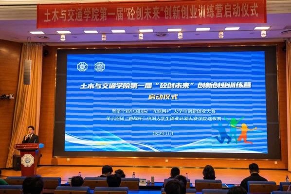 为提升学生创新创业能力,培育优秀创新创业项目与人才,营造创新创业氛围。2023年11月10日下午,土木与交通学院举办第一届“砼创未来”创新创业训练营启动仪式暨第十届中国国际“互联网+”大学生创新创业大赛以及第十四届“挑战杯”中国大学生创业计划大赛学院选拔赛。本次比赛邀请到了校团委副书记房阔老师、第十三届“挑战杯”全国银奖项目负责人2023届毕业生徐中权。