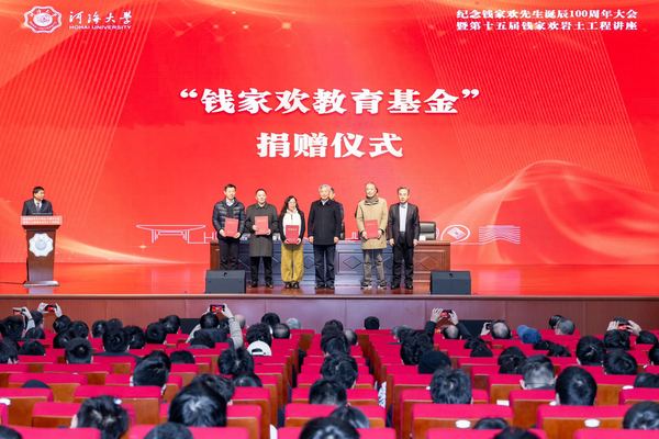 12月24日,我校举行纪念钱家欢先生诞辰100周年大会。河海大学校长杨桂山,中国工程院院士、清华大学水利系教授、土木大类首席教授、海洋工程研究院院长张建民,中国工程院院士、重庆大学党委常委、常务副校长刘汉龙、河海大学党委副书记郭继超等出席纪念大会。