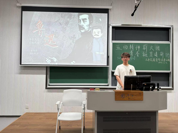 最后,主讲人鲁乔丹同学为大家讲述了一代文人鲁迅的故事,按照时间的顺序详细地介绍了鲁迅的经历与贡献,并着重介绍了他独特的文学风格和深刻的思想内涵。鲁迅的作品揭示了社会的黑暗面,鼓励人们追求真理和进步。同学们也学习倒了鲁迅独立思考,勇于批判的精神品质。同学们也将从鲁迅身上不断汲取力量,在鲁迅的精神激励下不断反思和进步,为社会的进步贡献力量。