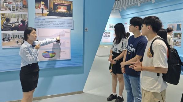 紧接着,同学们参观了代表着“华水时期”(1952-1985)的二号展厅,了解到在新中国成立初期,河海大学为水利现代化奠定基础的故事。改革开放之后,学校不断发展壮大,培养了一批批优秀的水利人才。