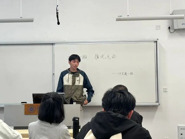 2024年10月9日下午16:50,交通一班班团支部在B区107举行了推优大会,本次会议由交通一班团支书孙若彭同学主持,年级团总支委员龙飞旭同学督导。