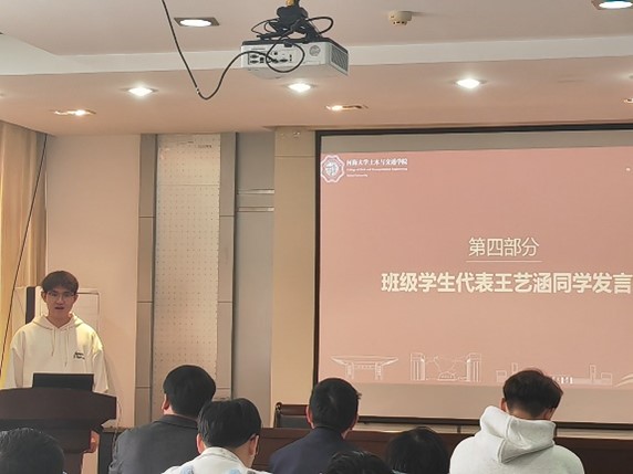 学生代表王艺涵随后发言。他表示,成为“茅以升班”的一员不仅是一份无上的荣誉,更是一种沉甸甸的责任。全体同学将以茅以升先生为榜样,勤奋学习,勇于创新,不断提升自身能力,积极投身社会实践,以实际行动传承茅以升精神,为社会和国家发展贡献青春力量。