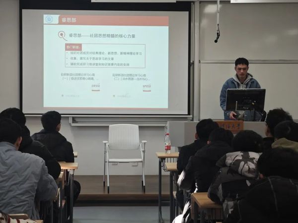活动伊始,社长华翊璇从社团职能、人员构成和社团活动等方面介绍了社团的基本情况,其中,由社团构建以思政学习为核心、提升多方面能力的综合平台。